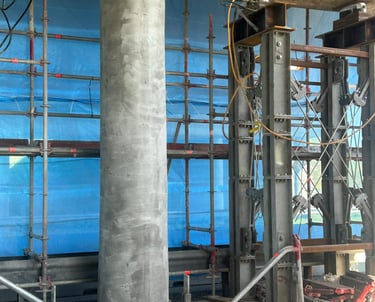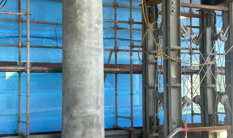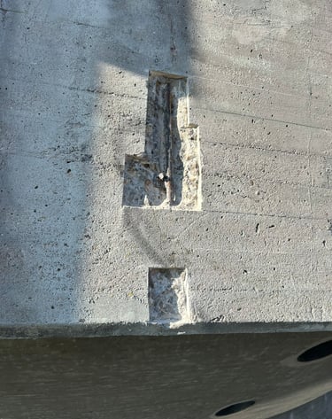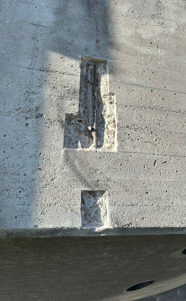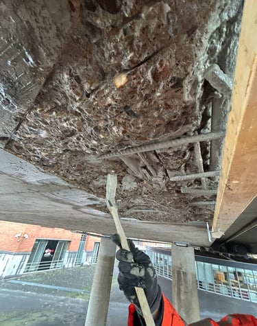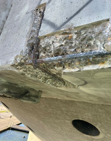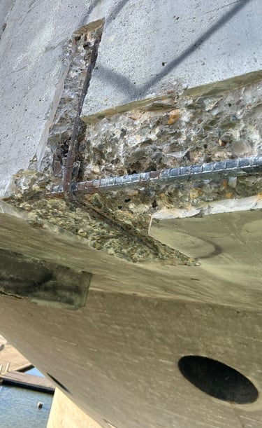 Het herstel van brugpijlers omvatte het verwijderen van beschadigd oud beton en het reinigen van het blootgestelde wapeningstaal. Na een juiste oppervlaktevoorbereiding werd een nieuwe hoogwaardige betonnen laag aangebracht om de sterkte, duurzaamheid en structurele integriteit van de pijler te herstellen.